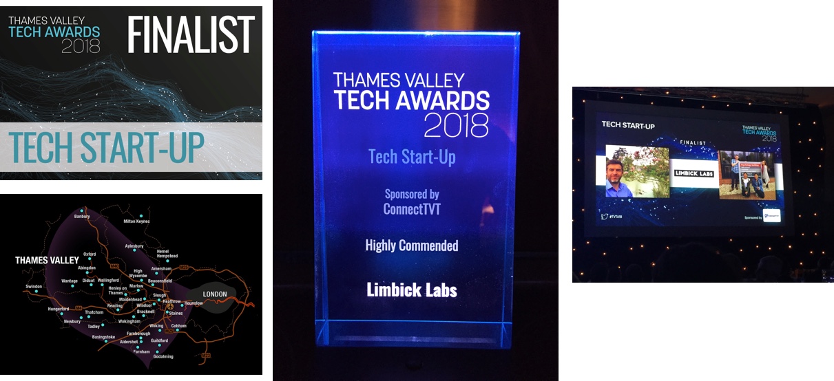 In 2018 Limbick Labs succsefully made into the the final of the Thames Vally Tech awards with 4 other outstanding startups in the region. We didn't win, but managed to pick up a highly commended award.