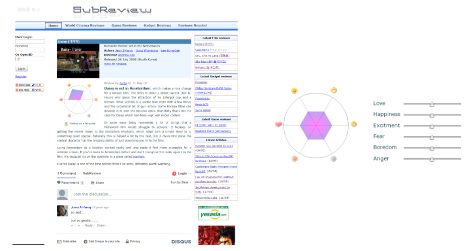 Created a world-cinema film review site in 2008, instead of using a star rating system I made a rating system using sliders / emoticons to try and capture how someone felt about the film.